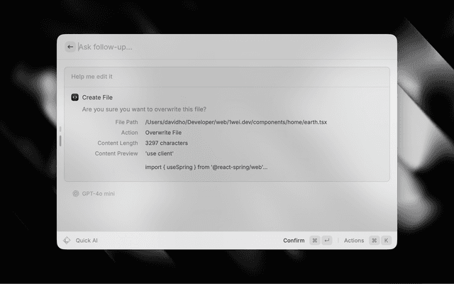 Ray Code is a Raycast extension designed to turn AI chat into a local-first coding agent. It wraps common filesystem tasks in a safe, workspace-aware toolkit so you can drive development workflows with natural language while staying productive on the desktop.