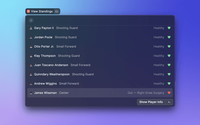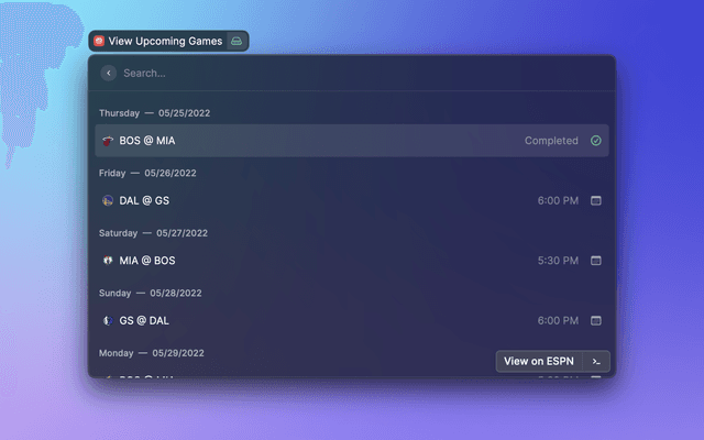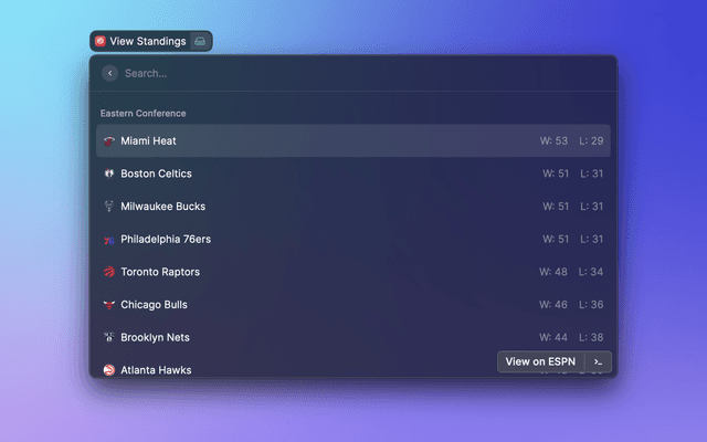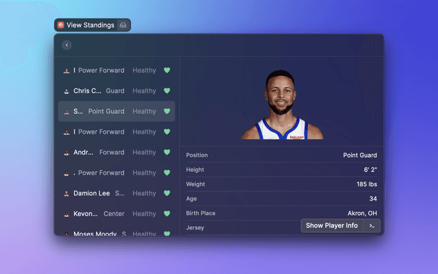 View upcoming NBA or WNBA games and team standings.