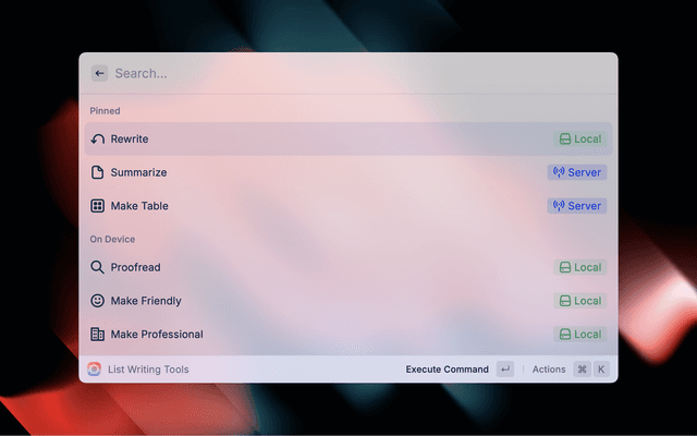 Use Apple Intelligence commands from the comfort of Raycast.