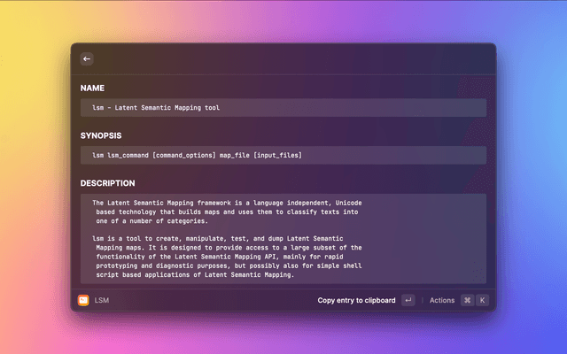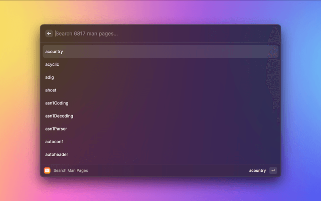 • Browse the list of man page entries, or directly jump to a specific entry by supplying the "command" parameter.
