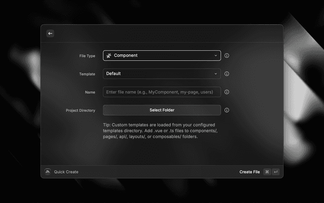 • Add multiple templates per file type (e.g., ColorMode.vue, Button.vue)