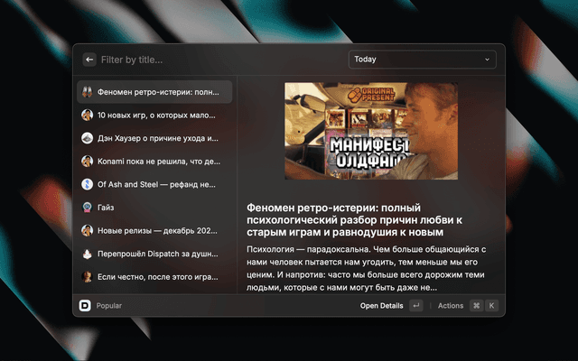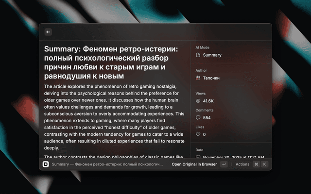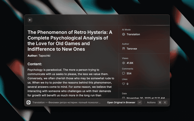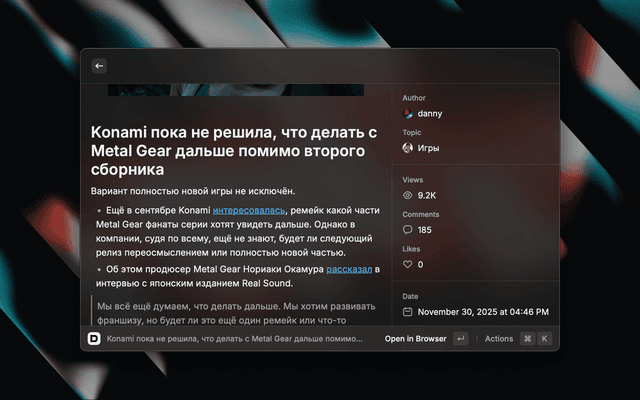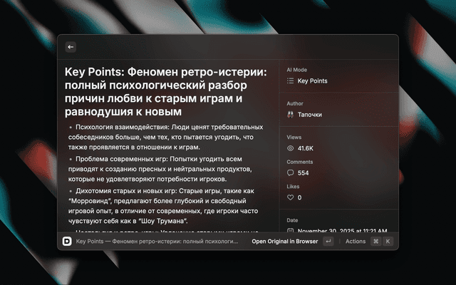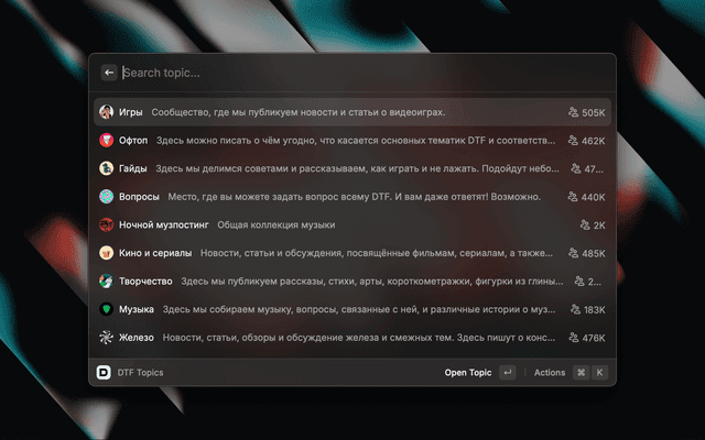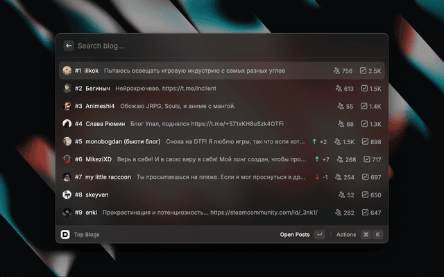 Browse posts, news, topics, and top blogs from DTF.ru with AI-powered features