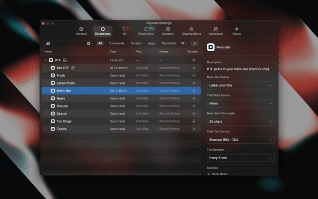 โš ๏ธ macOS only โ€” Menu Bar is not available on Windows due to Raycast platform limitations.
