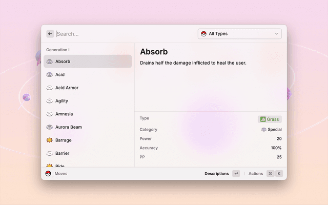 • Enhanced Move Information: Access detailed information about Pokémon moves, including base power, accuracy, PP, type, category, priority, target, and more.