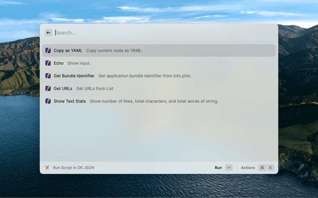 Run custom scripts with pasteboard content as the input or with specified input in OK JSON.
