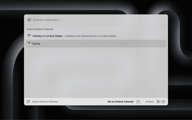 • Calendar Selection: Create events in specific calendars