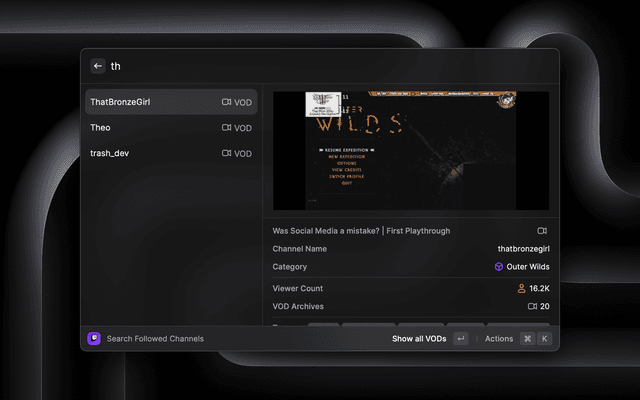 This extension used to require you to provide your own Client ID and Authorization Token obtained from a 3rd party application (twitchtokengenerator.com/quick/DvKMUdT92X or twitchapps.com/tokengen). This is no longer the case and we now use Raycast to manage the authentification process. This new process is much more secure and easier to use, but we've kept the old fields for retro-compatibility.