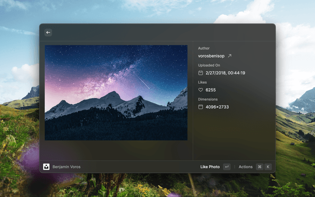 A Raycast extension that lets you communicate with Unsplash's API and gives you access to some functions.