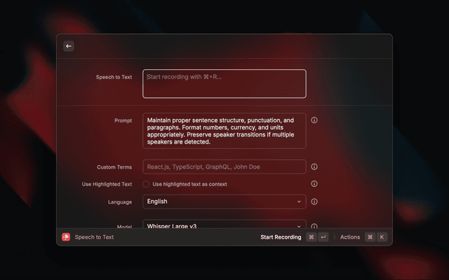 - Custom Prompts: Add specific instructions to improve transcription accuracy