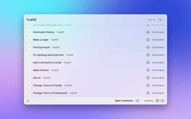 Unofficial support to use Fuelix Platform from the comfort of Raycast