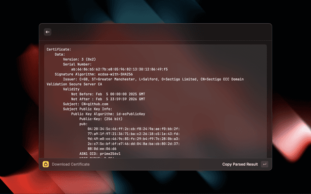 • Decode Certificate: Decode an X.509 certificate from clipboard.