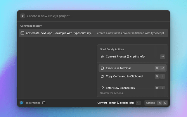 • If you happen to enter a prompt multiple times, Shell Buddy will pull the previous result from your command history to save credits