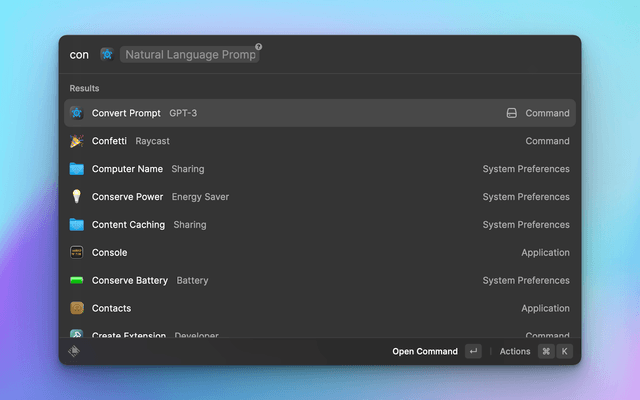 3. You can either copy the command with Cmd+J or run the command in the terminal with Cmd+Return