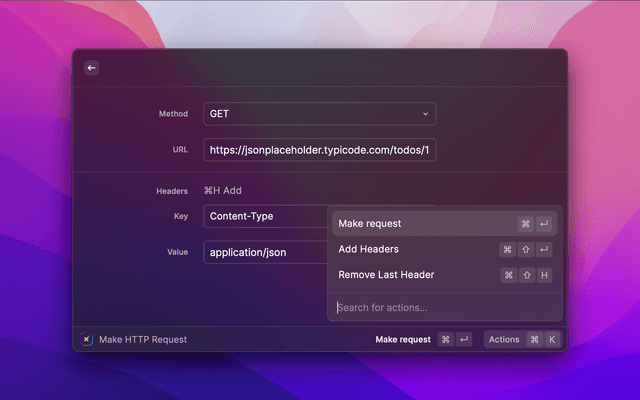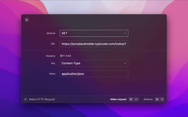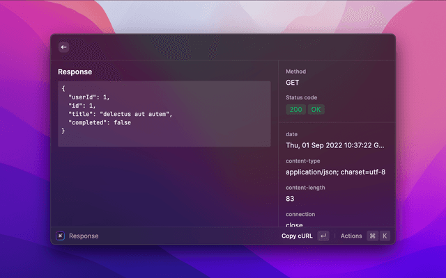 cURL is a keyboard-first HTTP client for Raycast, designed for developers and power users who want to quickly make, inspect, and manage HTTP requests directly from Raycast!