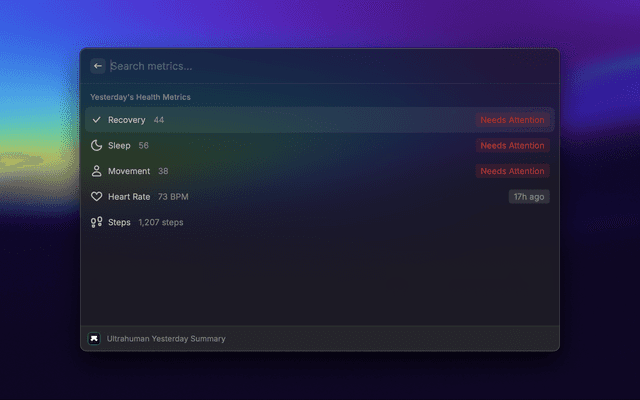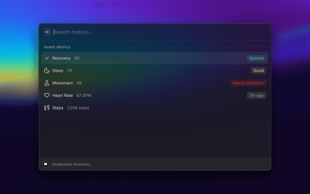 • Finally, come back to Raycast and open the Ultrahuman extension