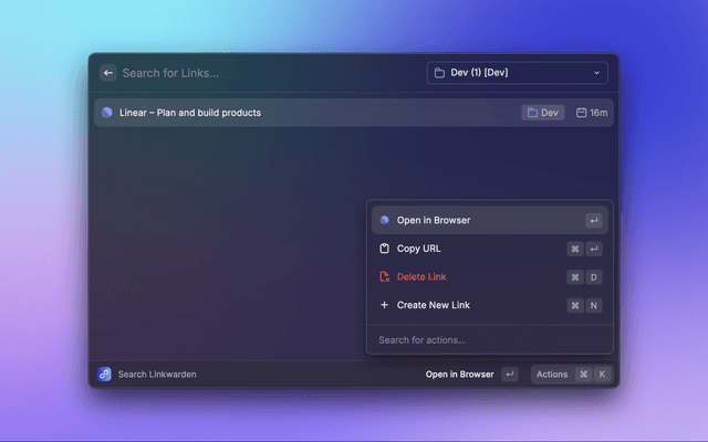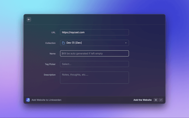 Manage your Linkwarden bookmarks directly from Raycast. You can add new bookmarks and search through your existing ones effortlessly.