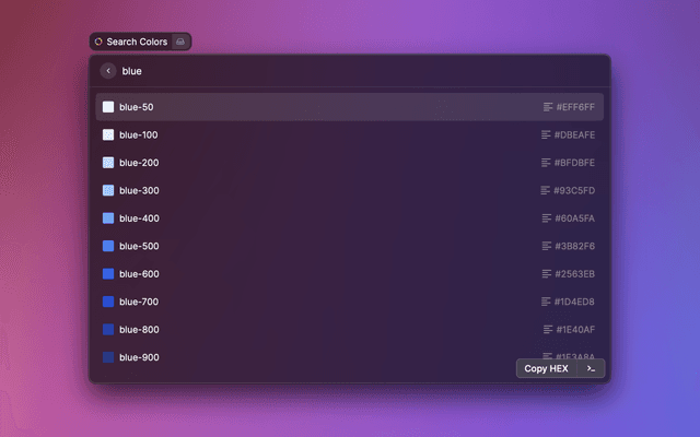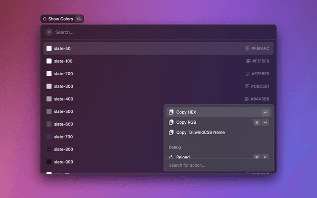 Search Tailwind CSS colors to use the HEX or RGB color value in projects that don't use Tailwind CSS classes.