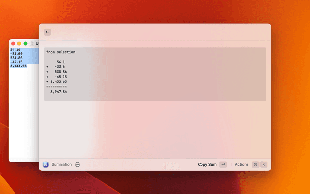 • Calculate the sum of numbers on the clipboard if there is no selected text