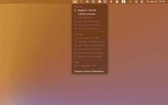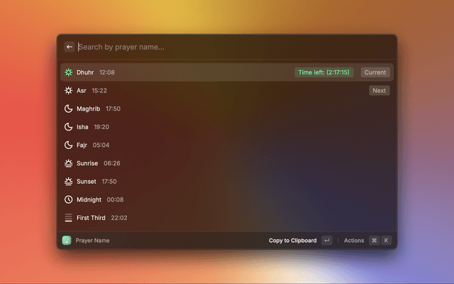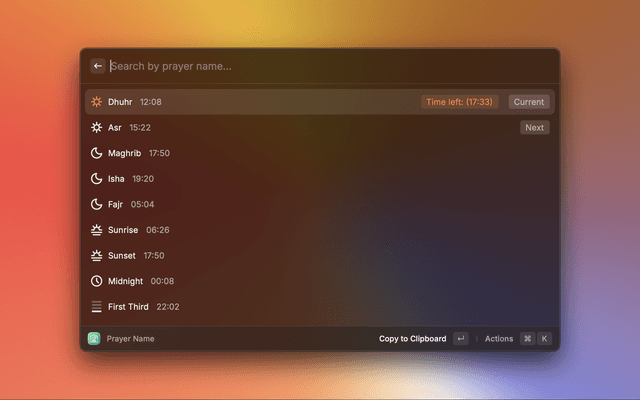 This extension helps you to view adhan time for any location in the world with different calculation methods (calenders) using Aladhan.com API.