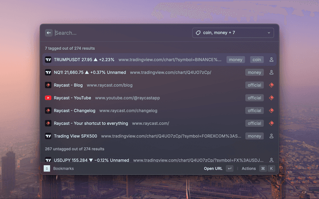 • #tag# - Filter by tag. Example: #dev# tools searches for "tools" with the "dev" tag