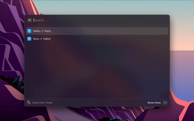 Tallinn-Tartu train times in Raycast
