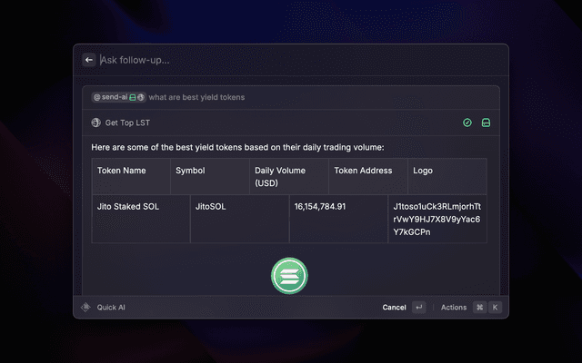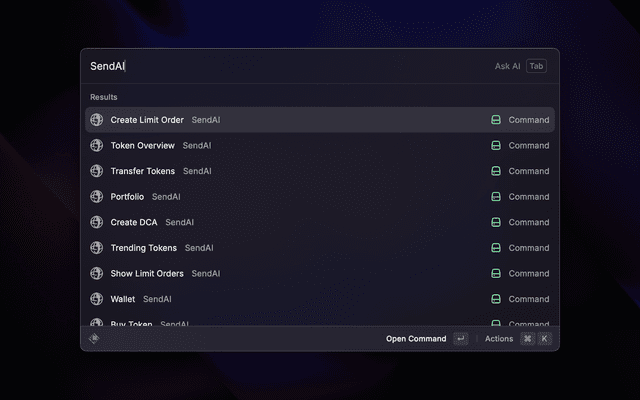 SendAI Raycast is a Raycast extension that comes with an in-built wallet (protected by Privy) to help you interact with the Solana blockchain using natural language prompts and commands. Manage your wallet, trade tokens, check portfolios, and perform various DeFi operations directly from Raycast.