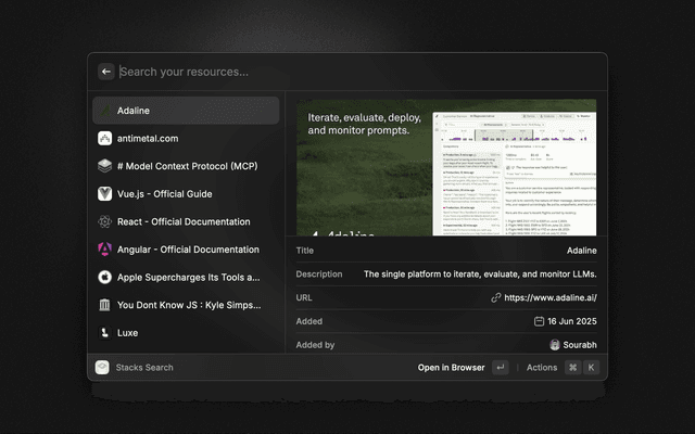 - 🔍 Search Resources: Browse and search through all your saved Stacks resources