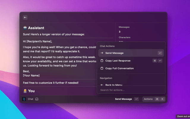 • ⌘ + Enter - Copy Last Response in Chat Menu