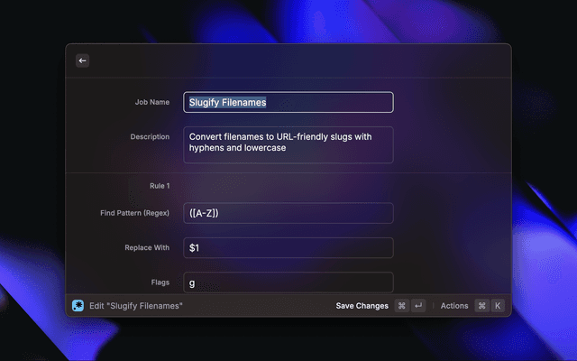 - 🎬 Predefined Jobs: Includes useful presets like Slugify, and file cleanup