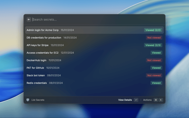 - π Quick Creation - Create secrets directly from Raycast search with arguments