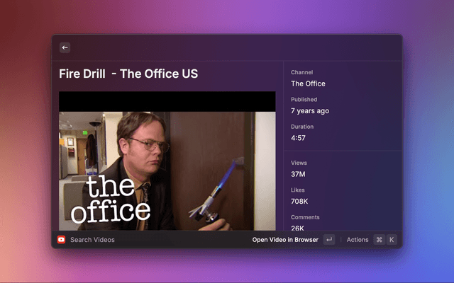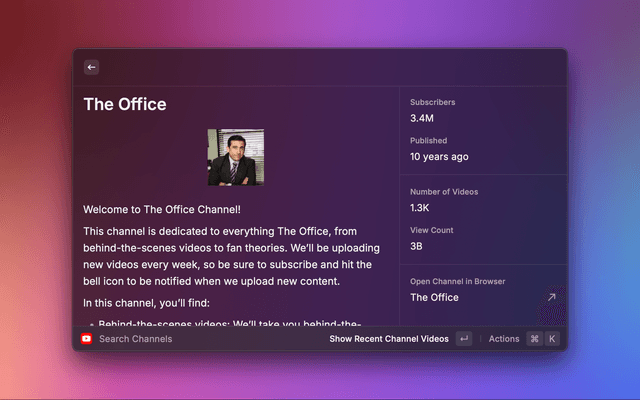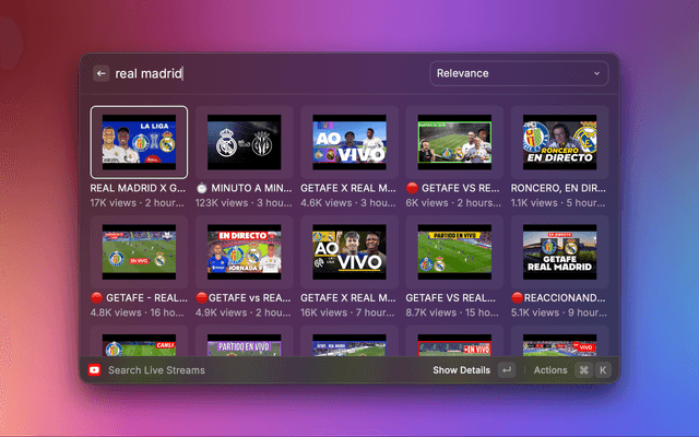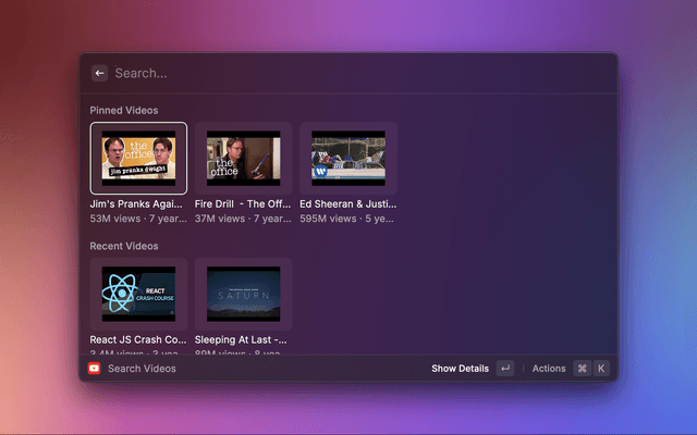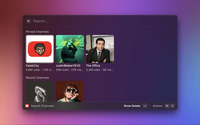 Raycast extension to search YouTube videos, channels, and more.