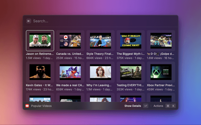 Now you should be able to search videos and channels on YoutTube with Raycast 🚀.