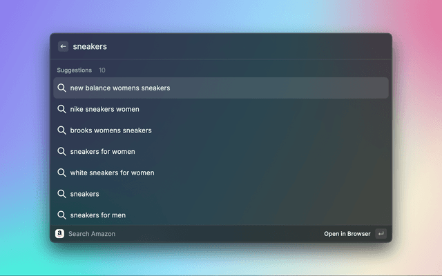 A straightforward extension that integrates Amazon's search functionality into Raycast, providing autosuggestions for an efficient product finding experience across various Amazon marketplaces.