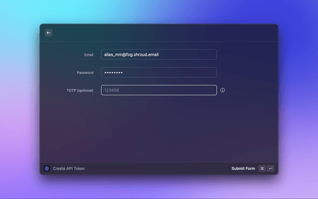 a. Run Create API Token command through the Shroud.email extension (this command only requires your valid Shroud.email domain)